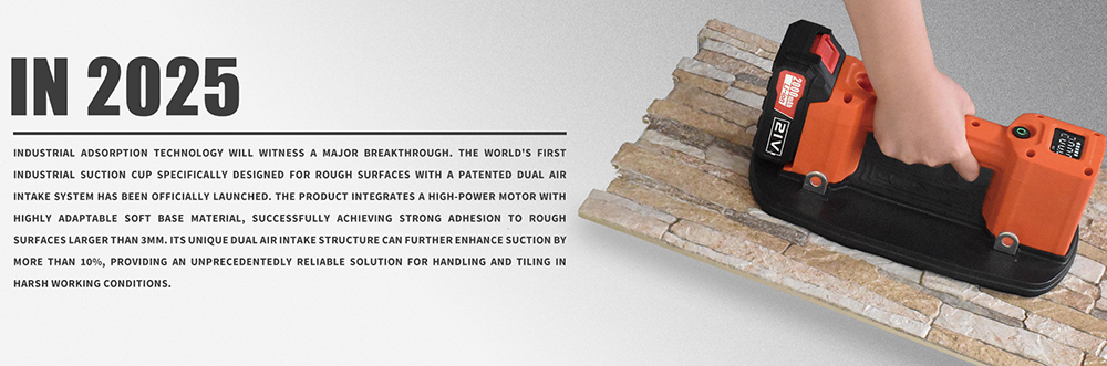 In 2025, we achieved a major breakthrough in industrial adsorption technology with the world’s first industrial suction cup designed specifically for rough surfaces. Featuring a patented dual air intake system and a high-power motor, this product adheres firmly to rough surfaces with gaps larger than 3mm. Its dual air intake structure boosts suction power by over 10%, providing an unprecedented reliable solution for harsh working conditions.